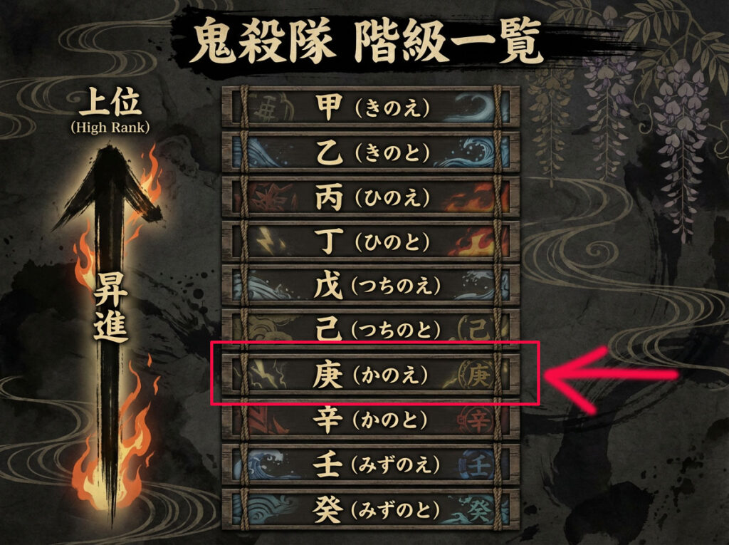 最下位の「癸(みずのと)」からスタートして、数々の死線を乗り越えてきた結果、下から4番目の階級まで昇格しています。彼らの成長が、この階級という形で示されているわけですね。