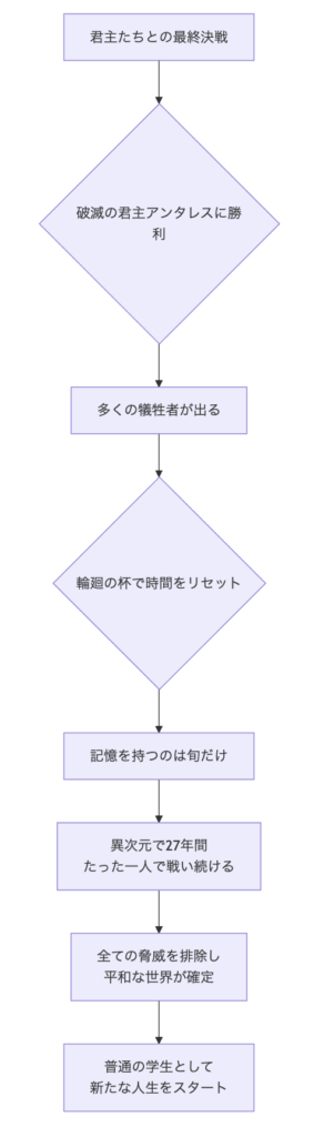 「俺だけレベルアップな件」の結末は、単なる最強主人公の物語ではなく、強さの果てに「孤独な自己犠牲」を選んだ、一人の英雄の物語です。彼は栄光も名声も全て捨て、誰にも知られることなく世界を救いました。